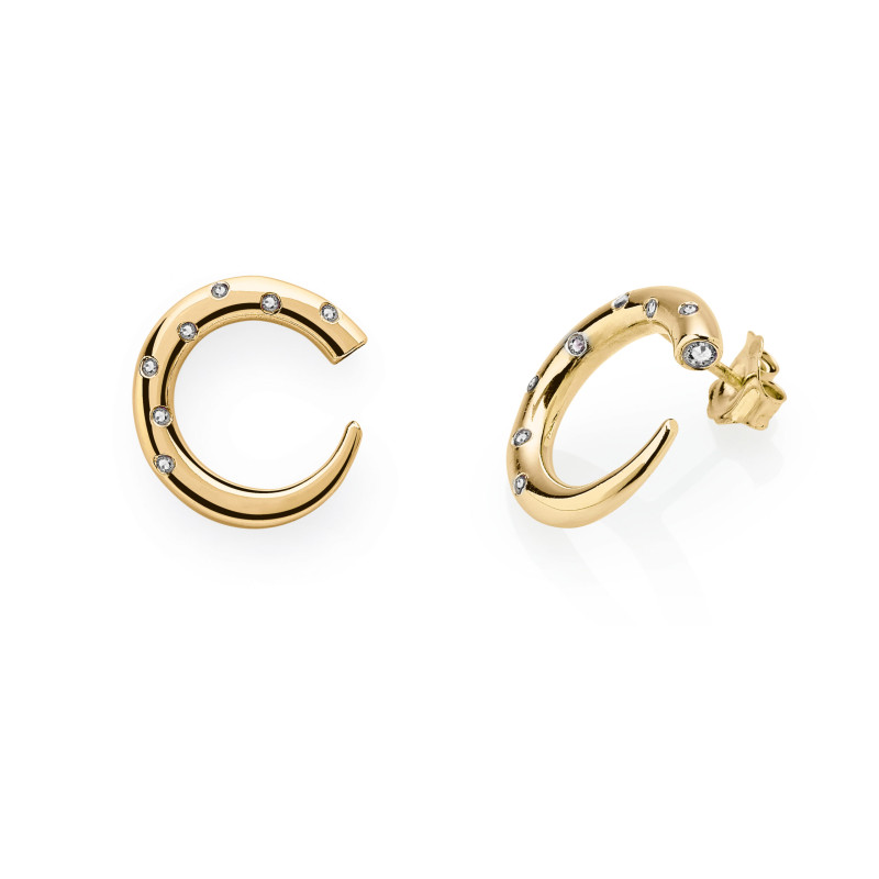 Earrings 17 mm | Gold-Plated (Gold-Toned Silver) | 16 CZ