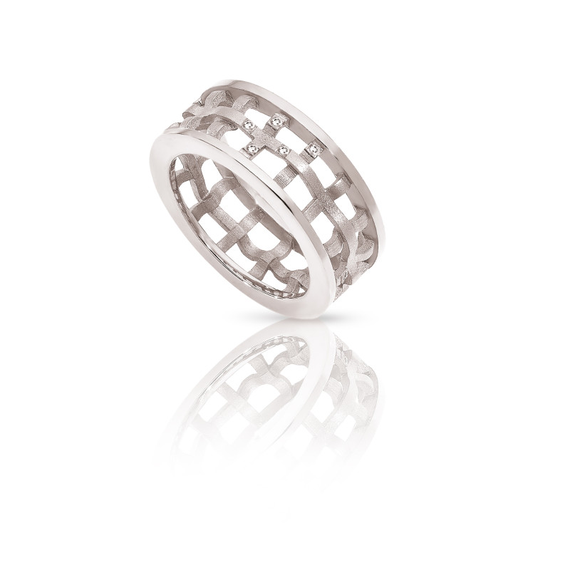 The beauty of the detail of wave movement. Characterization of river waves through a child's vision. The splash of brightness when the sun meets the water is represented by zirconia.
