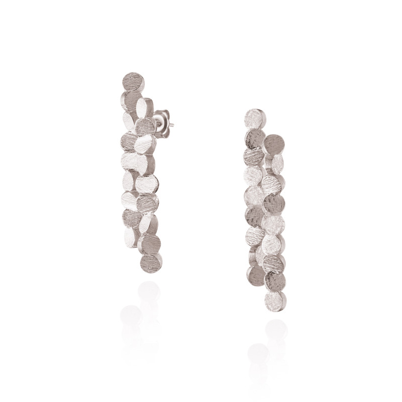 Entre caos e ordem não há oposição, mas um diálogo invisível. Estes brincos capturam a essência desse equilíbrio dinâmico, representando a beleza que emerge da interação entre forças aparentemente opostas. O design explora a harmonia encontrada no ponto de encontro entre a aleatoriedade e a estrutura, convidando a uma reflexão sobre a complexidade da vida.
