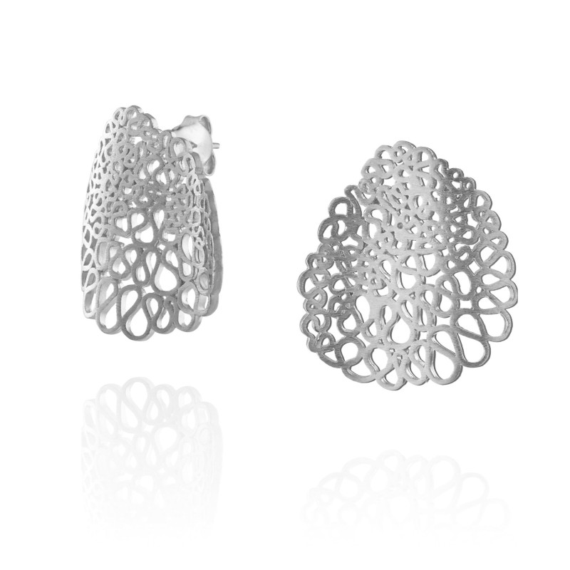 Inspirado no trabalho de Michelangelo Pistoletto para a Serpentine gallery. Estes brincos ondulados reinterpretam a complexidade e profundidade do trabalho de Pistoletto, transformando conceitos artísticos em peças de joalharia com movimento. O design labiríntico ondulado simboliza a jornada interior fluida, os caminhos sinuosos que percorremos e as descobertas que fazemos ao explorar os meandros da nossa própria mente.