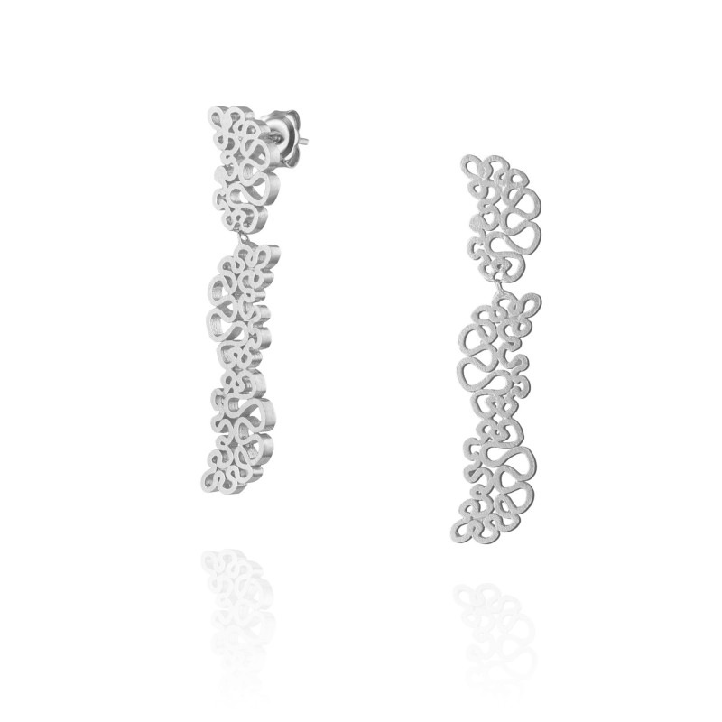 Inspirado no trabalho de Michelangelo Pistoletto para a Serpentine gallery. Estes brincos compridos reinterpretam a complexidade e profundidade do trabalho de Pistoletto, transformando conceitos artísticos em peças de joalharia alongadas. O design labiríntico estendido simboliza a jornada interior prolongada, os caminhos extensos que percorremos e as descobertas profundas que fazemos ao explorar os meandros da nossa própria mente.